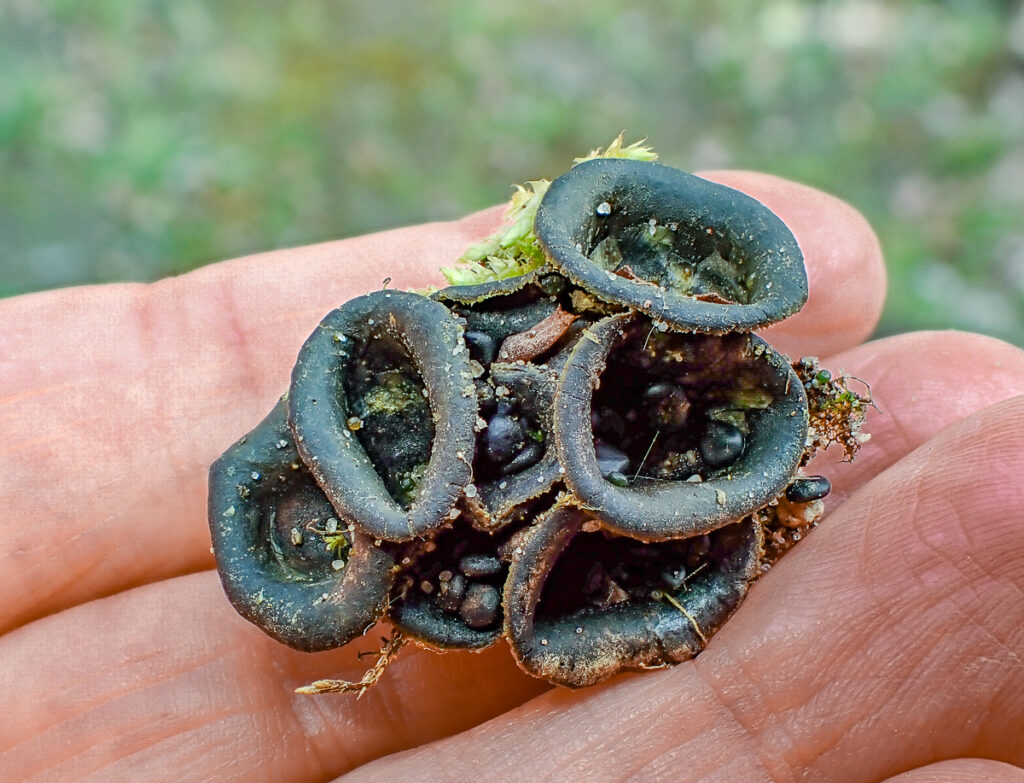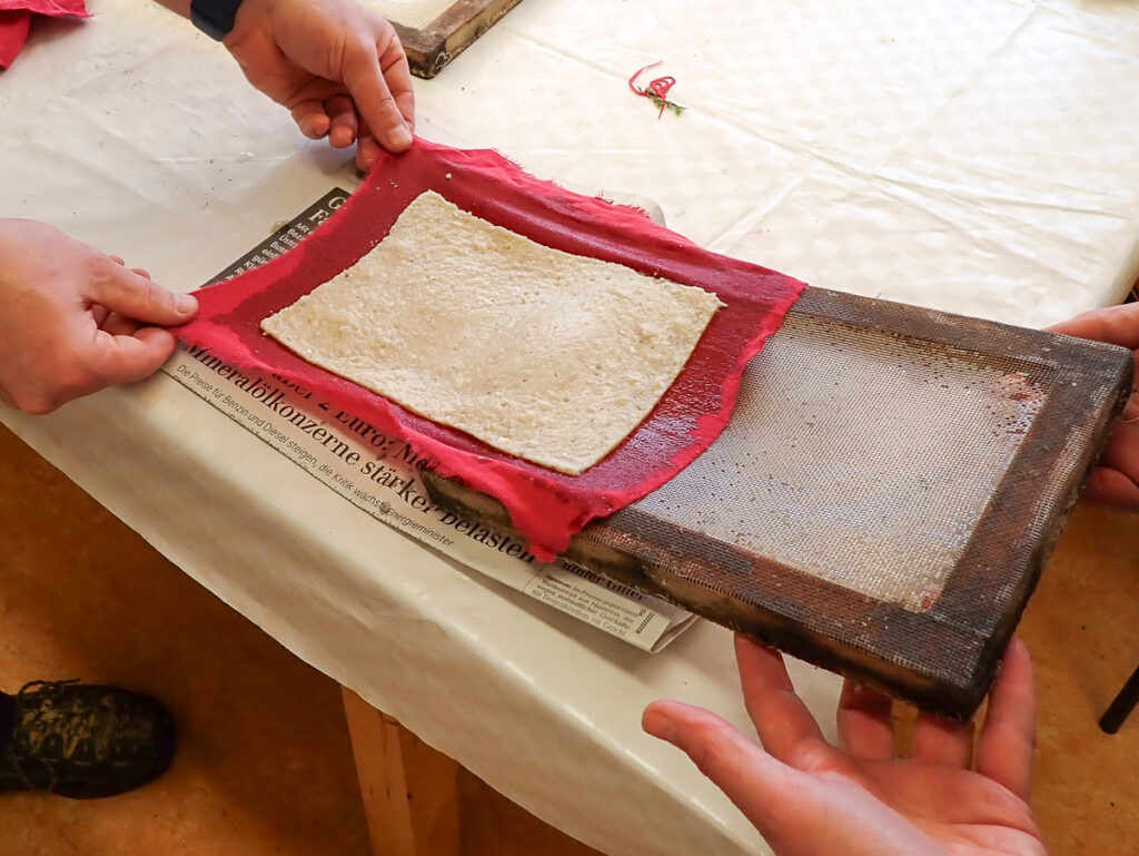 Am Nachmittag wird es praktisch und kreativ: Aus Birkenporlingen schöpfen wir Pilzpapier und experimentieren mit Zunderschwamm, um Funken aufzufangen. Zunderartikel aus traditioneller rumänischer Handwerkskunst, wie wir sie dabei hatten, könnt ihr bei Peter Karasch bekommen. Solche Baumpilze lassen sich auch in wundervolle „Zauberburgen“ verwandeln.