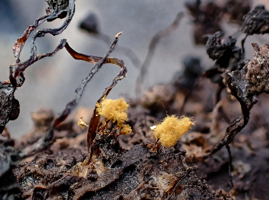 Am Sonntag geht es wieder in den Wald. Gleich zu Beginn finden wir auf dem Gelände Glimmer-Tintlinge und Teuerlinge. Im Wald stoßen wir neben den vielen „detektivischen“ Spuren auf Kiefern-Zapfenrüblinge, den sogenannten Malerpilz und einige winzige Arten, die wir später unter dem Stereomikroskop genauer untersuchen. Unsere Funde dokumentieren wir wieder mit einigen Fotos beim NABU/naturgucker.