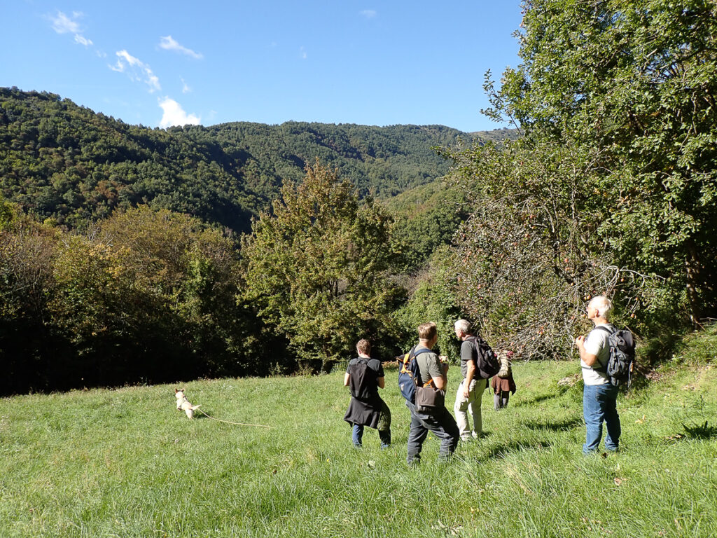 Donnerstag geht es wieder bei schönstem Sonnenwetter in den „Zauberwald“ am Monte Gottero. Das erste Stück führt uns den Berg hinauf über extensiv beweidetes Gebiet, bevor wir dann in den Wald mit den knorzigen Buchen gelangen. Neben vielen verschiedenen Pilzarten begeistert uns hier auch der Ausblick in die weite Landschaft. Unsere Funde sind beim NABU/naturgucker mit einigen Fotos eingetragen.