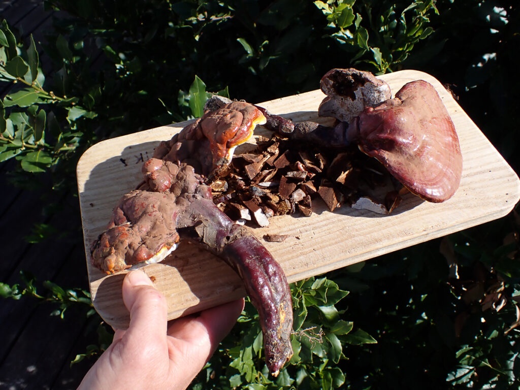 Am Nachmittag machen wir eine kleine Entdeckungstour zur Kirche von Teviggio und Abends genießen wir den Reishi-Tee, Steinpilz-Carpaccio und wieder viele verschiedene Kostproben der Pilzarten, die wir gefunden haben.